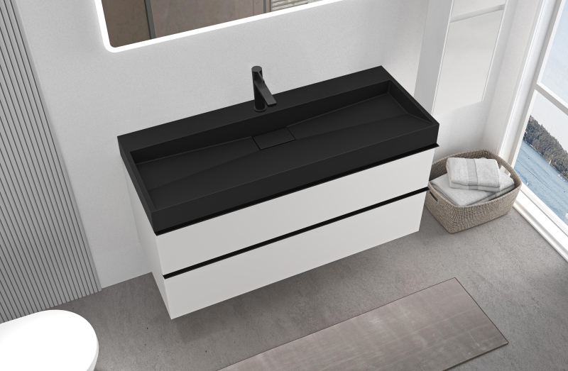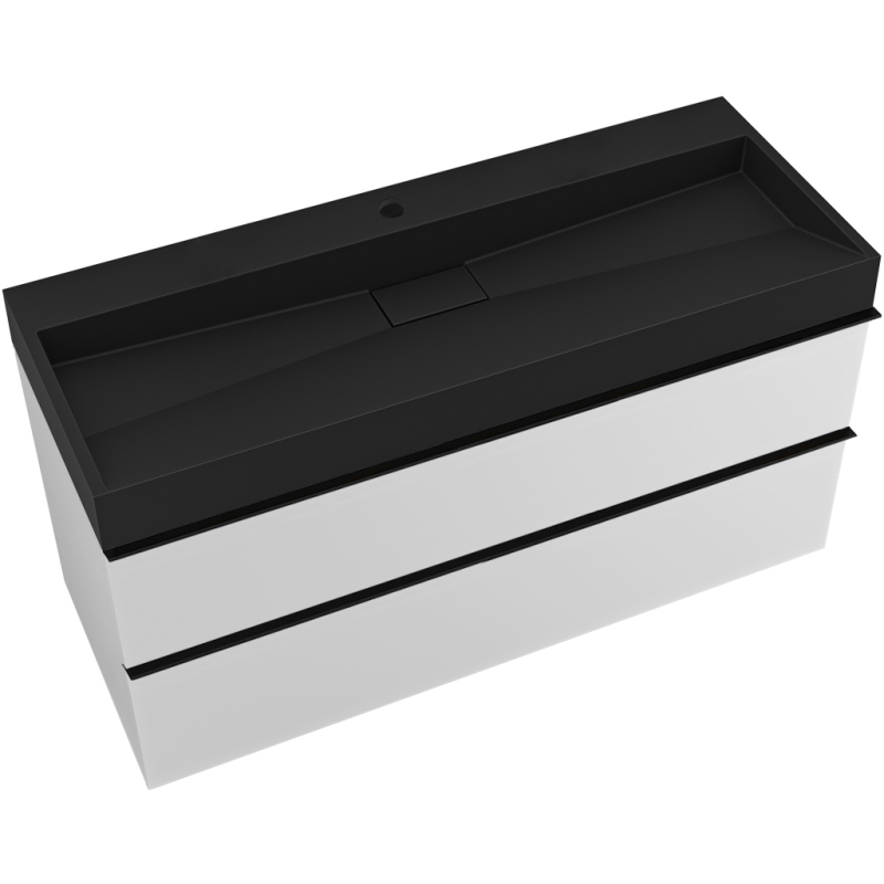 CERANO - Koupelnová skříňka Velora - bílá matná - úchytka černá + umyvadlo s otvorem pro baterii z litého mramoru Vita - černá - 99x49,8x46 cm