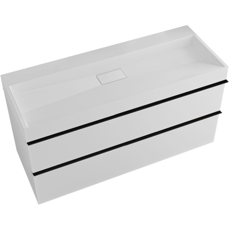 CERANO - Koupelnová skříňka Velora - bílá matná - úchytka černá + umyvadlo z litého mramoru Vita - bílá lesklá - 100x53x46 cm