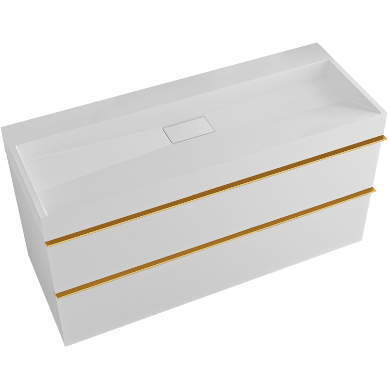 CERANO - Koupelnová skříňka Velora - bílá matná - úchytka zlatá + umyvadlo z litého mramoru Vita - bílá matná - 100x53x46 cm