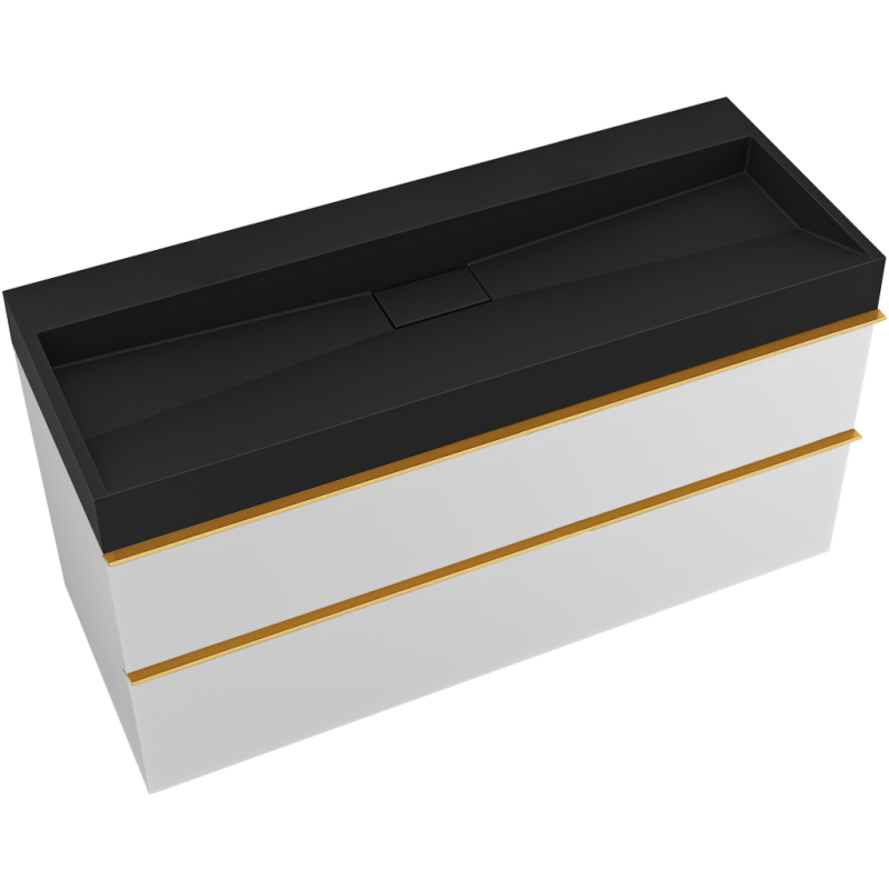 CERANO - Koupelnová skříňka Velora - bílá matná - úchytka zlatá + umyvadlo z litého mramoru Vita - černá - 99x49,8x46 cm