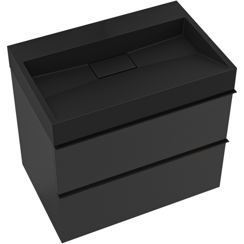CERANO - Koupelnová skříňka Velora - černá matná - úchytka černá + umyvadlo z litého mramoru Vita - černá - 70x53x46 cm