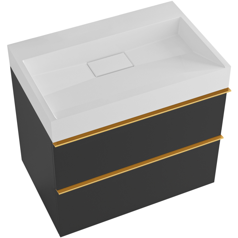 CERANO - Koupelnová skříňka Velora - černá matná - úchytka zlatá + umyvadlo z litého mramoru Vita - bílá lesklá - 70x53x46 cm