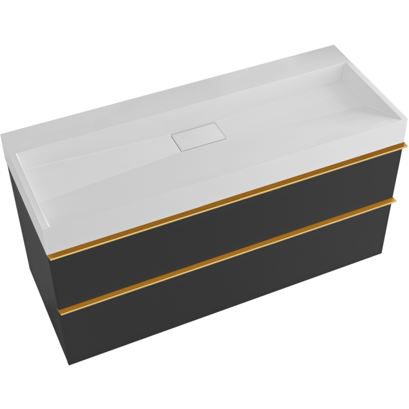 CERANO - Koupelnová skříňka Velora - černá matná - úchytka zlatá + umyvadlo z litého mramoru Vita - bílá matná - 100x53x46 cm