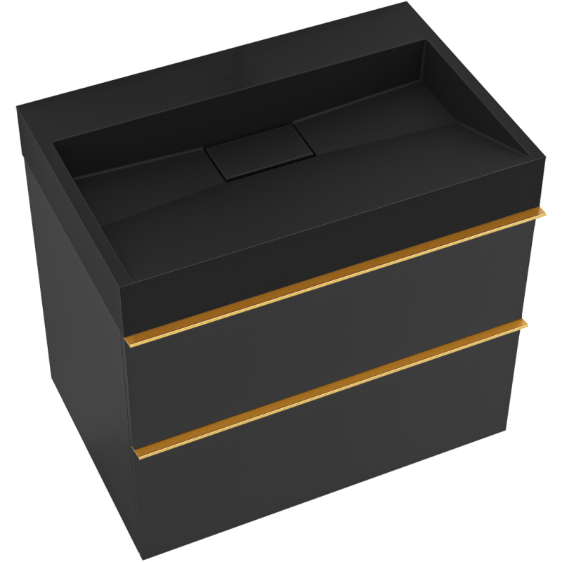 CERANO - Koupelnová skříňka Velora - černá matná - úchytka zlatá + umyvadlo z litého mramoru Vita - černá - 70x53x46 cm