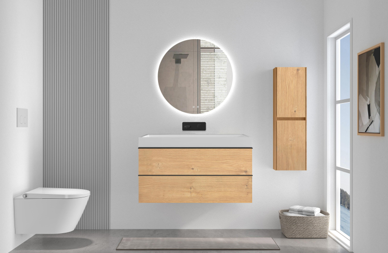 Koupelnová skříňka dodávaná kompletně smontovaná z výroby – bez skládání, stačí vybalit a zavěsit. Profesionální sestavení zajišťuje perfektní seřízení, vyšší pevnost a okamžitou připravenost k používání. Ušetříte čas a získáte spolehlivý nábytek bez montážních starostí.