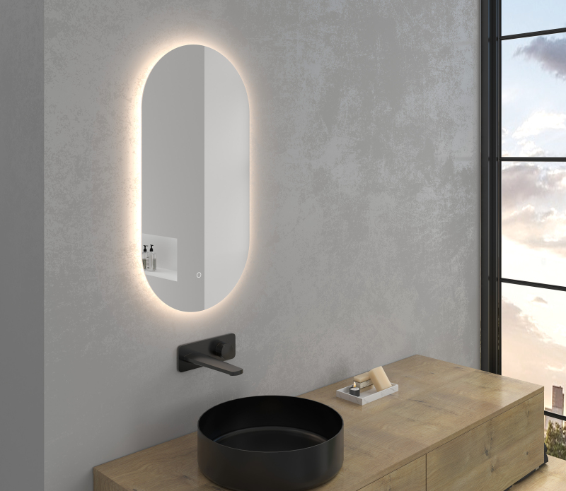 Zrcadlo je vybaveno zadním LED podsvícením, které svítí směrem ke stěně a vytváří jemný světelný efekt po celém obvodu. Rozptýlené světlo je vyzařováno z prostoru mezi rámem a zrcadlem, neoslňuje, zajišťuje rovnoměrné a příjemné nasvětlení prostoru koupelny.