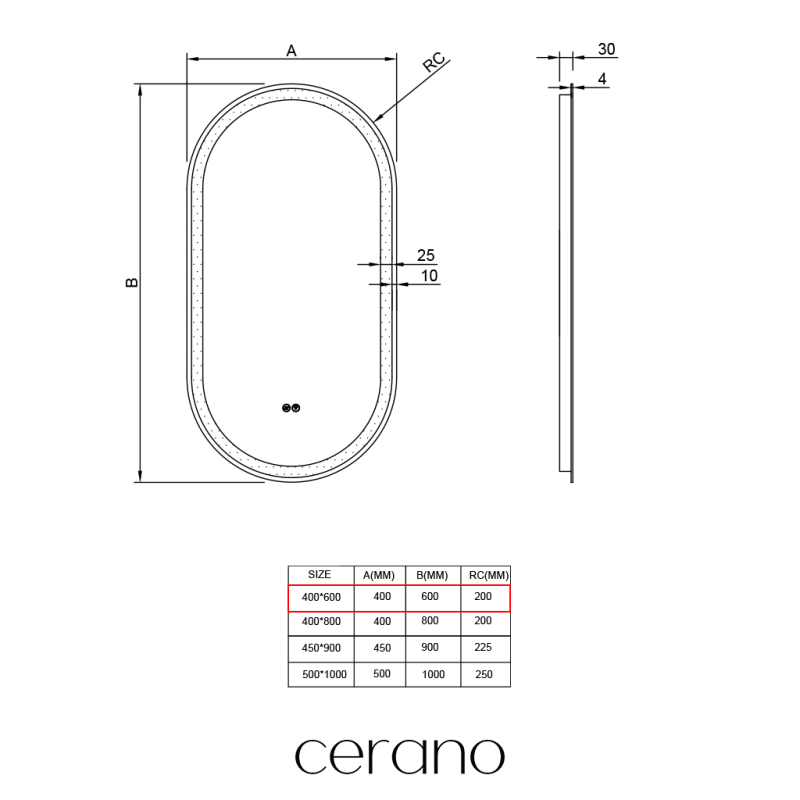 CERANO - Koupelnové LED zrcadlo Ayvo - 40x60 cm