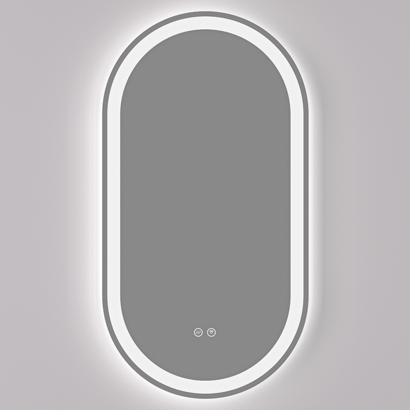 Zrcadlo je vybaveno kombinací LED osvětlení, které svítí jak směrem ke stěně ze zadní strany, tak přímo do prostoru skrz jednolitý světelný pás v zrcadle . Zadní podsvícení vytváří jemný světelný efekt po obvodu, zatímco přední osvětlení zajišťuje rovnoměrné podsvícení obličeje a prostoru před zrcadlem. Obě světelné složky se doplňují a poskytují rovnoměrné a funkční osvětlení koupelny.