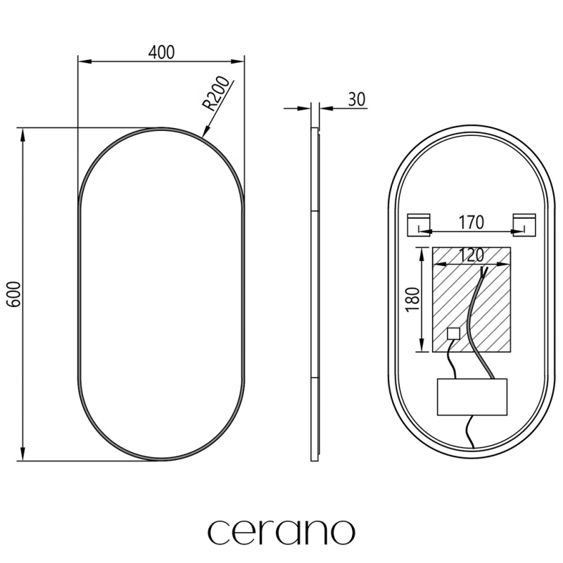 CERANO Koupelnové LED zrcadlo Balzo, kovový rám černá matná 40x60 cm CER-NT8144H-40X60