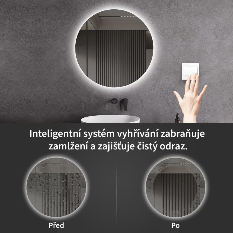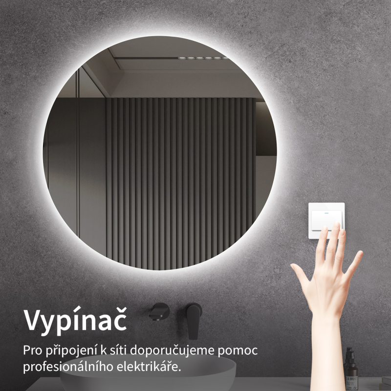 Osvětlení zrcadla lze zapnout skrze vypínač na zdi. Je nutné napojit jej přímo na domácí elektrickou síť. Před instalací doporučujeme obrátit se na kvalifikovaného elektrikáře, který zajistí správné a bezpečné připojení.