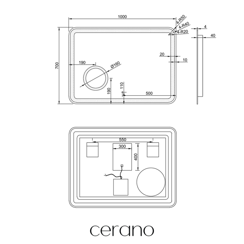 CERANO - Koupelnové LED zrcadlo Lucido - 100x70 cm