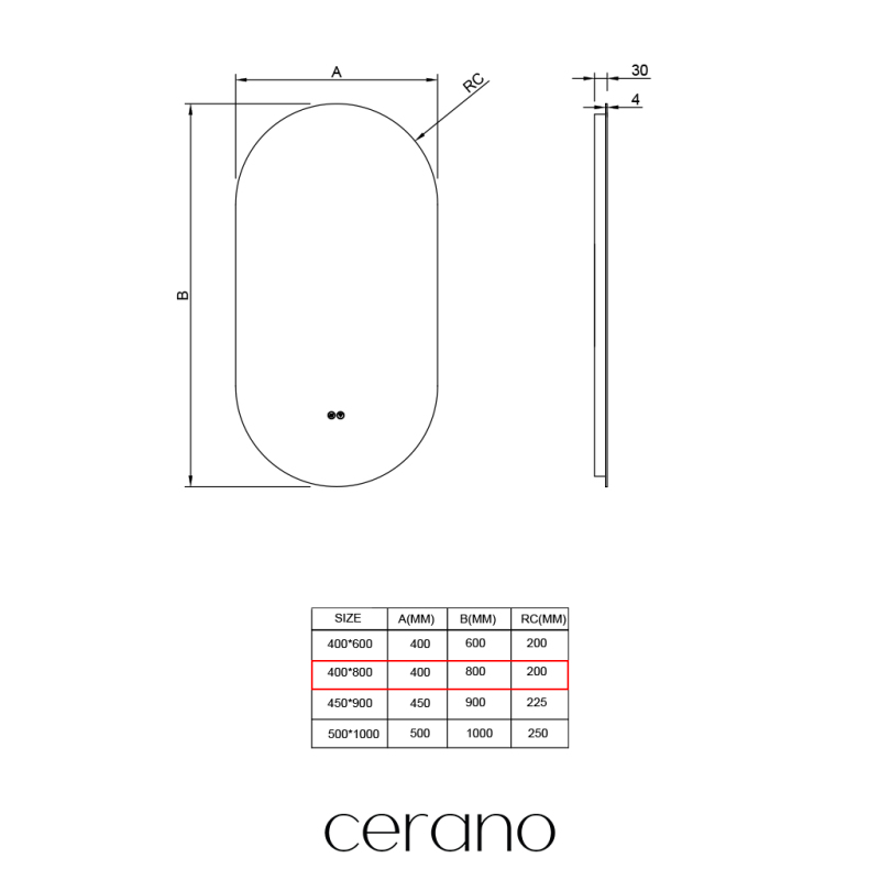 CERANO - Koupelnové LED zrcadlo Luno - 40x80 cm