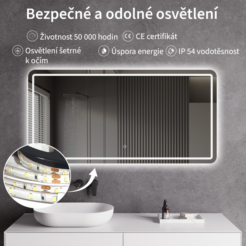 Zrcadla s krytím IP54 jsou ideální do vlhkého prostředí, jako jsou koupelny. Poskytují spolehlivou ochranu proti stříkající vodě, což zaručuje bezpečný a dlouhodobý provoz i v náročných podmínkách.