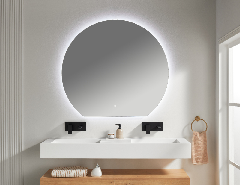 Zrcadlo je vybaveno zadním LED podsvícením, které svítí směrem ke stěně a vytváří jemný světelný efekt po celém obvodu. Rozptýlené světlo je vyzařováno z prostoru mezi rámem a zrcadlem, neoslňuje, zajišťuje rovnoměrné a příjemné nasvětlení prostoru koupelny.