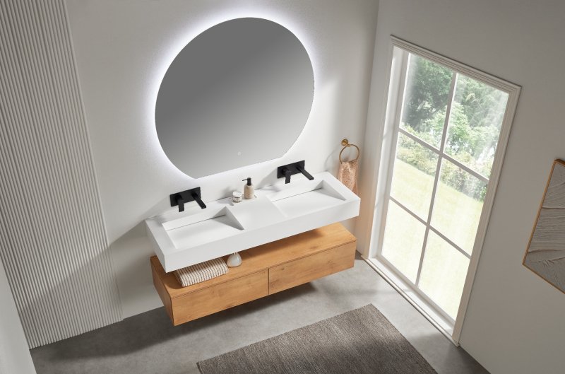 LED osvětlení u koupelnových zrcadel přináší řadu výhod: nižší provozní náklady, vyšší účinnost a krytí IP, menší tepelné vyzařování, delší životnost, možnost stmívání, volbu teploty chromatičnosti a různé varianty podsvícení – po obvodu, za zrcadlem nebo bodově.