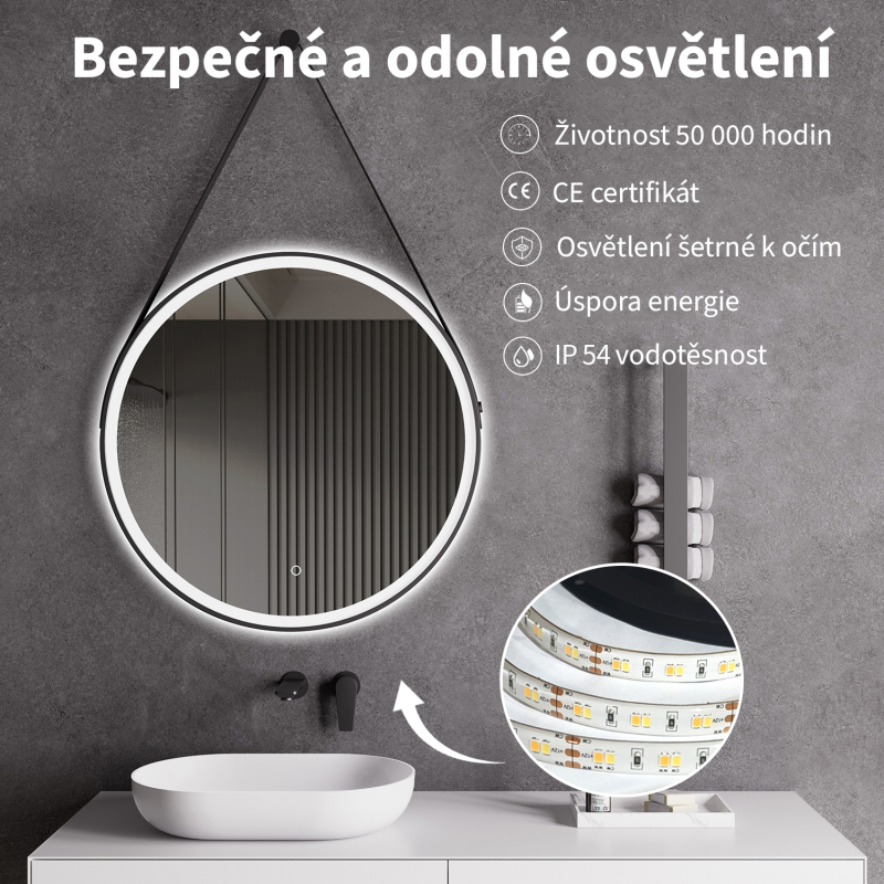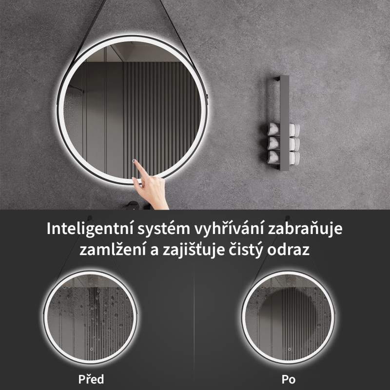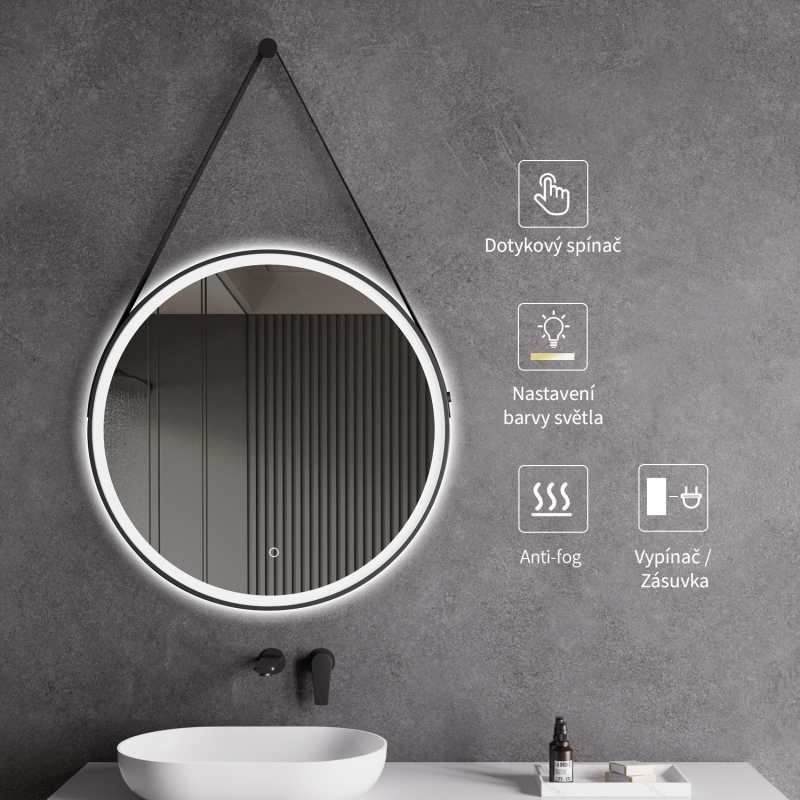 Cerano přináší do vaší koupelny zrcadlo, které spojuje moderní design s vysokou funkčností. Toto závěsné kruhové LED zrcadlo je vybaveno vybaveno elegantním černým rámem v matné úpravě, který dodává vaší koupelně sofistikovaný vzhled.