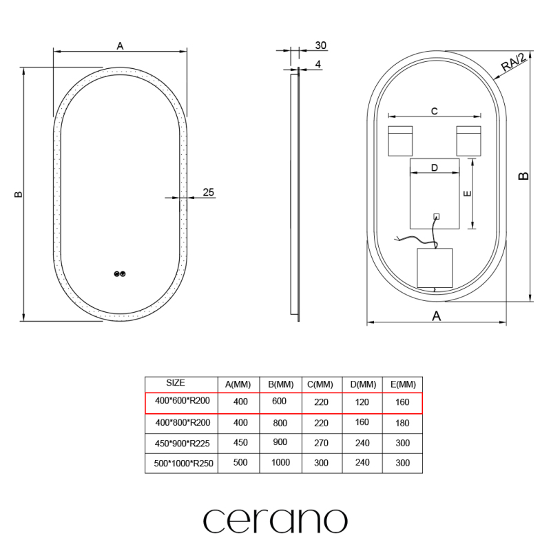 CERANO - Koupelnové LED zrcadlo Toro - 40x60 cm