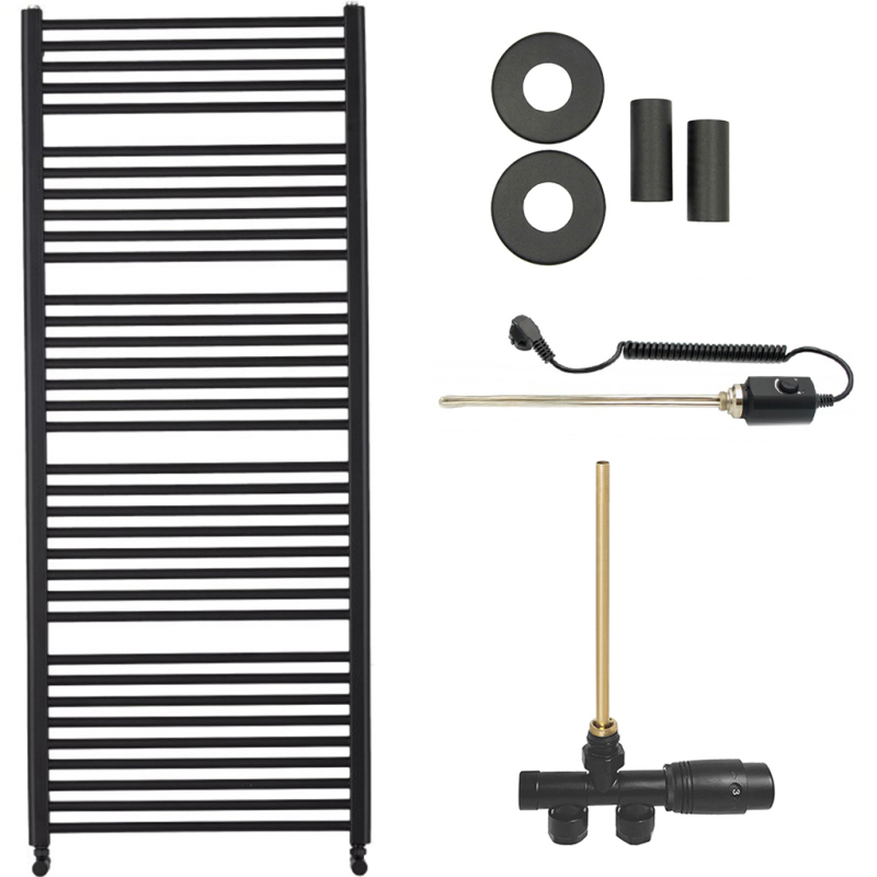 CERANO - Koupelnový radiátorový set Alberto - kombinované vytápění, termo tyč - boční jednobodové připojení - 999W - černá matná - 1660x650 mm