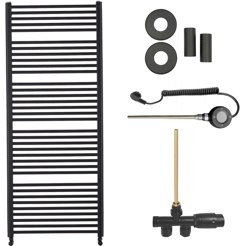 CERANO - Koupelnový radiátorový set Alberto - kombinované vytápění, wifi tyč - boční jednobodové připojení - 999W - černá matná - 1660x650 mm
