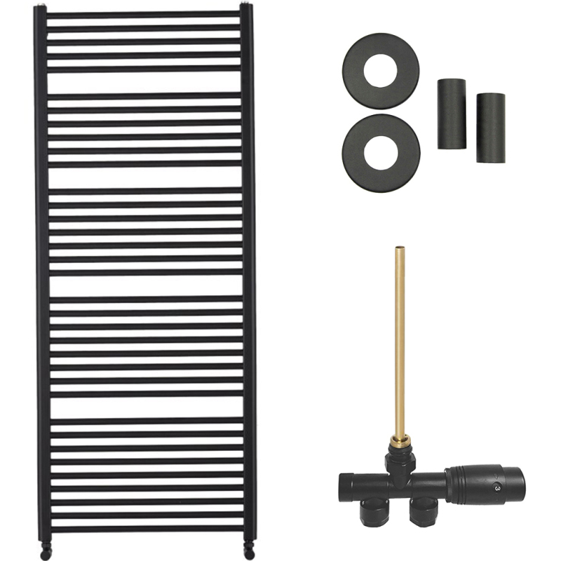 CERANO - Koupelnový radiátorový set Alberto - ústřední výtápění - boční jednobodové připojení - 999W - černá matná - 1660x650 mm