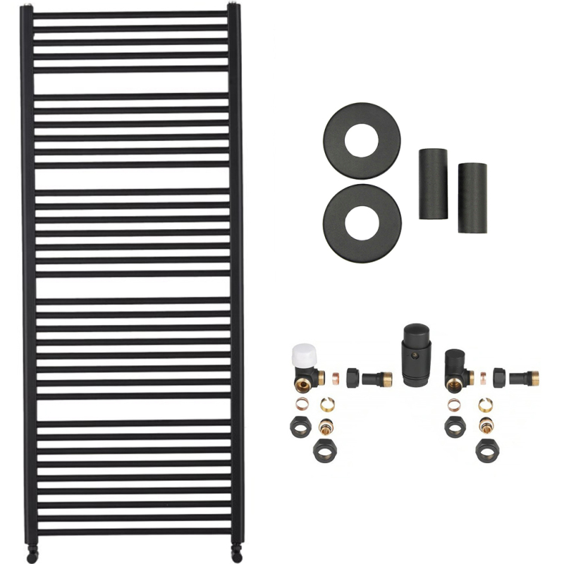 CERANO - Koupelnový radiátorový set Alberto - ústřední výtápění - boční připojení - 999W - černá matná - 1660x650 mm