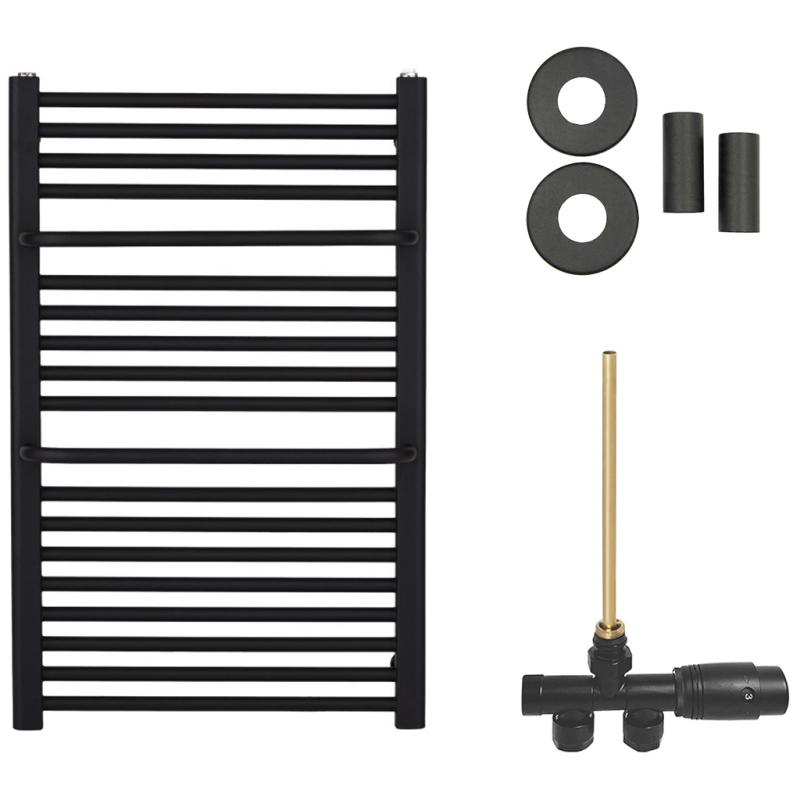 CERANO - Koupelnový radiátorový set Antonio - ústřední výtápění - boční jednobodové připojení - 351W - černá matná - 660x550 mm
