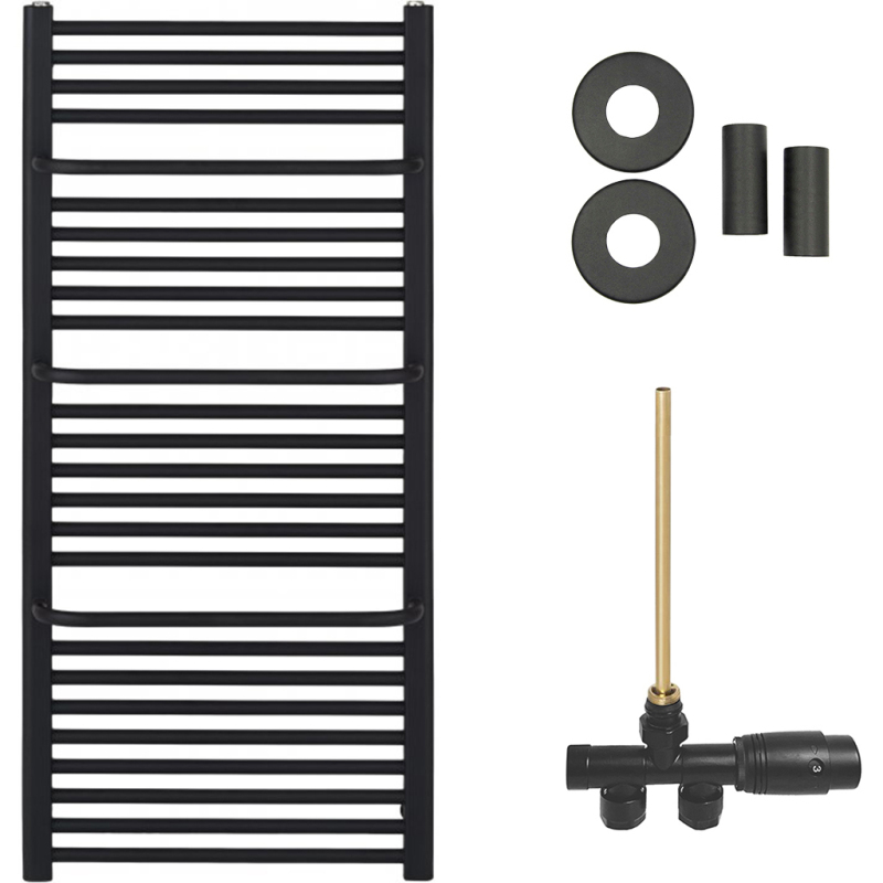 CERANO - Koupelnový radiátorový set Antonio - ústřední vytápění - boční jednobodové připojení - 857W - černá matná - 1460x550 mm