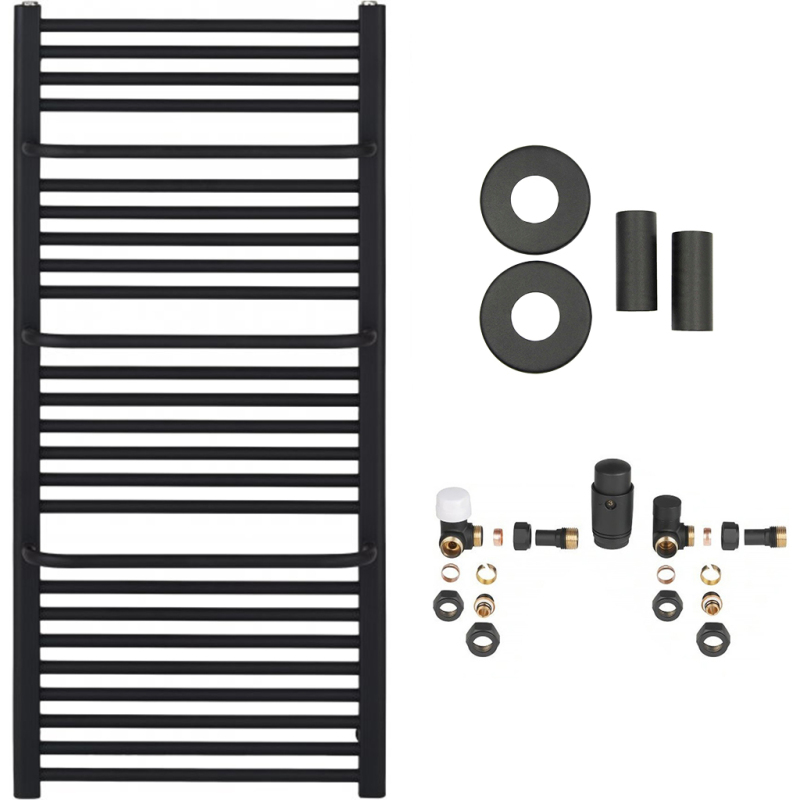 CERANO - Koupelnový radiátorový set Antonio - ústřední vytápění - boční připojení - 655W - černá matná - 1180x550 mm mm