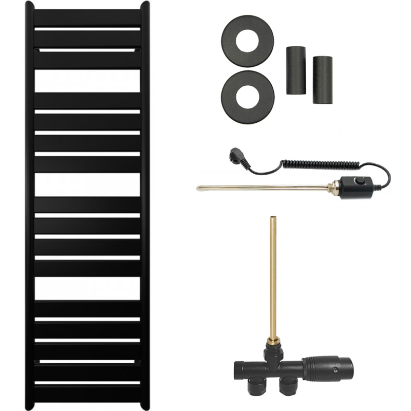 CERANO - Koupelnový radiátorový set Arturo - kombinované vytápění, termo tyč - boční jednobodové připojení - 859W - černá matná - 1600x500 mm