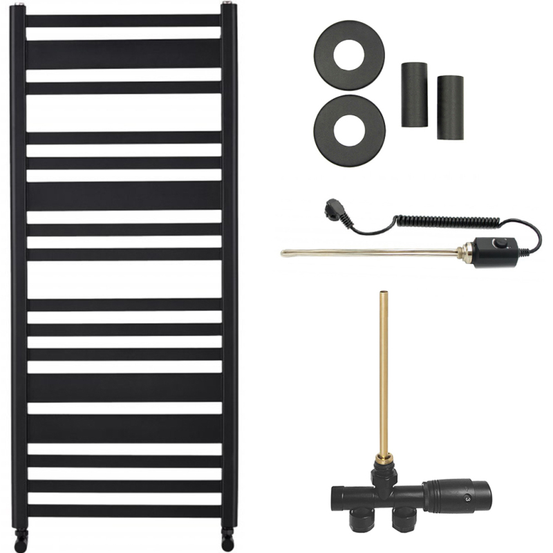 CERANO - Koupelnový radiátorový set Enrico - kombinované vytápění, termo tyč - boční jednobodové připojení - 559W - černá matná - 1210x550 mm
