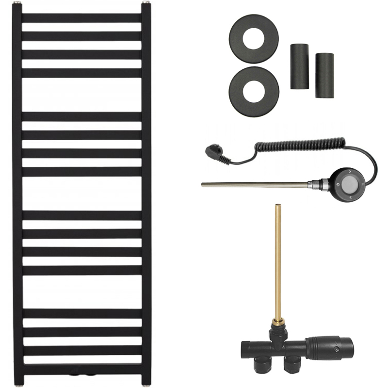 CERANO - Koupelnový radiátorový set Fulgidus - kombinované vytápění, wifi tyč - boční jednobodové připojení - 616W - černá matná - 1190x430 mm