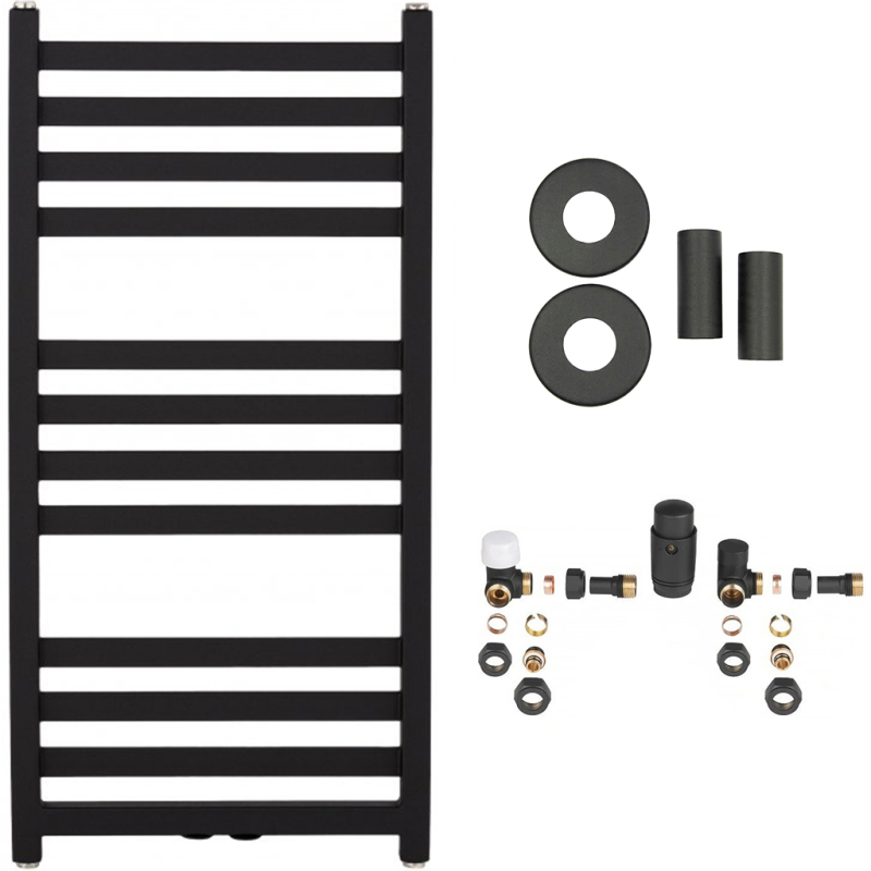 CERANO - Koupelnový radiátorový set Fulgidus - ústřední vytápění - boční připojení - 503W - černá matná - 880x430 mm