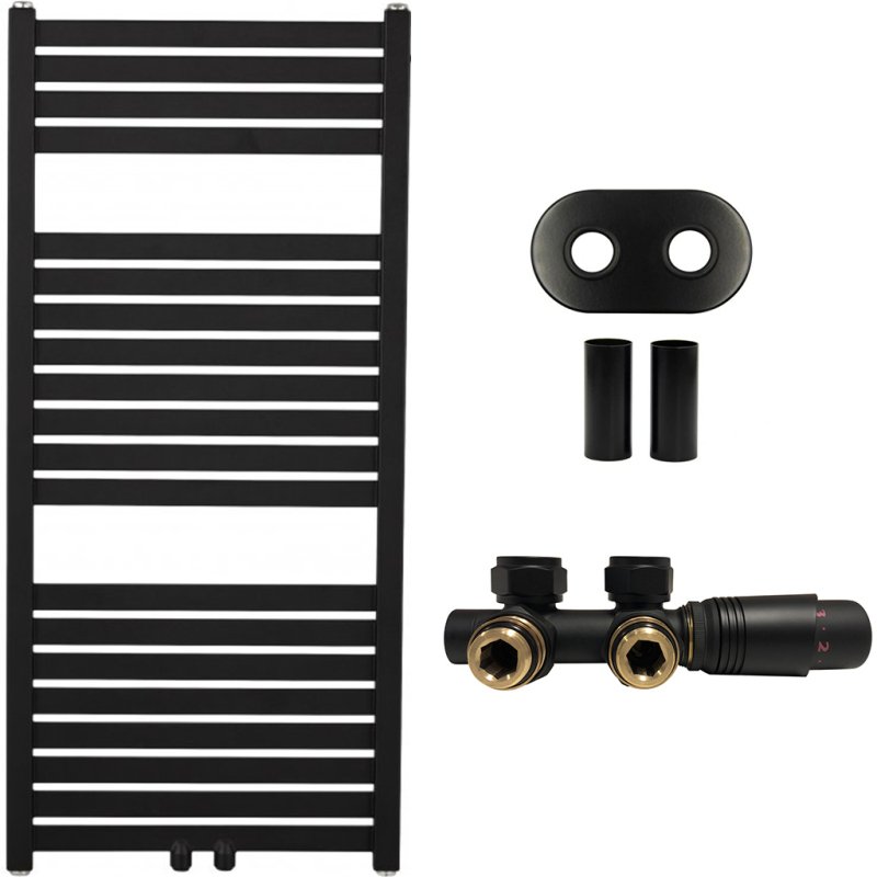CERANO - Koupelnový radiátorový set Luigino - ústřední vytápění - středové připojení 50 mm - 300W - černá matná - 970x450 mm