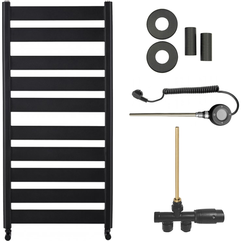 CERANO - Koupelnový radiátorový set Marco - kombinované vytápění, wifi tyč - boční jednobodové připojení - 816W - černá matná - 1125x550 mm