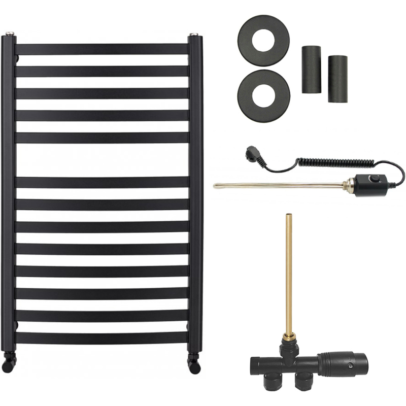 CERANO - Koupelnový radiátorový set Paolo - kombinované vytápění, termo tyč - boční jednobodové připojení - 568W - černá matná - 850x550 mm