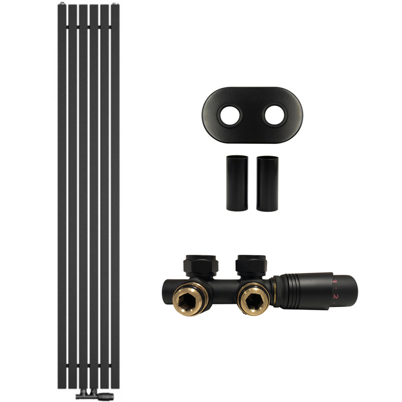 CERANO - Koupelnový radiátorový set Pyricus - ústřední vytápění - středové připojení 50 mm - 721W - černá matná - 1800x290 mm