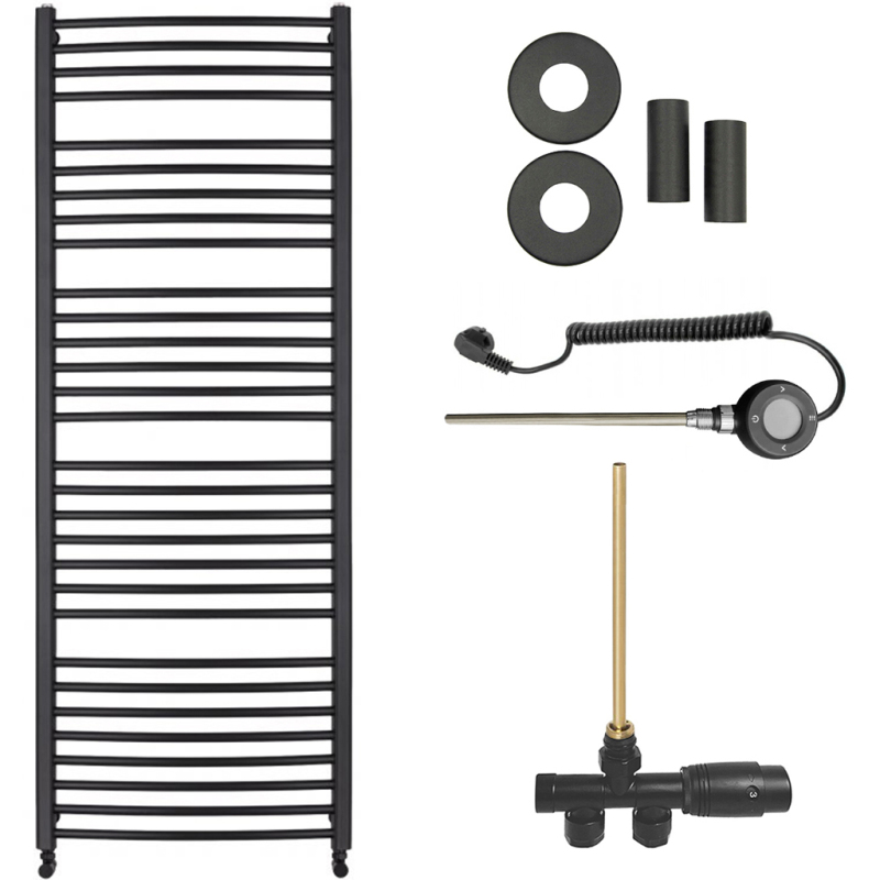 CERANO - Koupelnový radiátorový set Stefano - kombinované vytápění, wifi tyč - boční jednobodové připojení - 773W - černá matná - 1460x650 mm