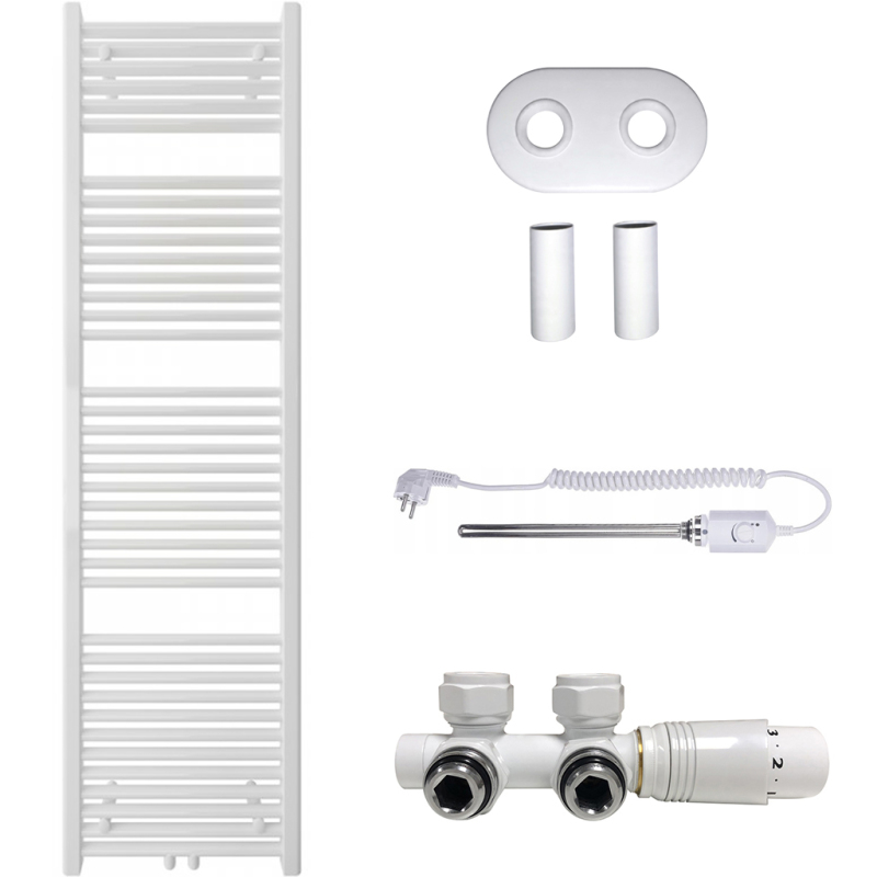 CERANO - Koupelnový radiátorový set Lincoln - kombinované výtápění, termo tyč - středové připojení 50 mm - 559W - bílá matná - 1800x500 mm