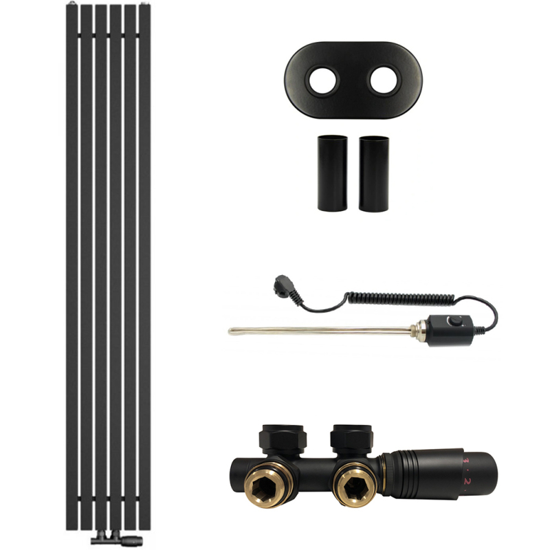 CERANO - Koupelnový radiátorový set Pyricus - kombinované výtápění, termo tyč - středové připojení 50 mm - 721W - černá matná - 1800x290 mm