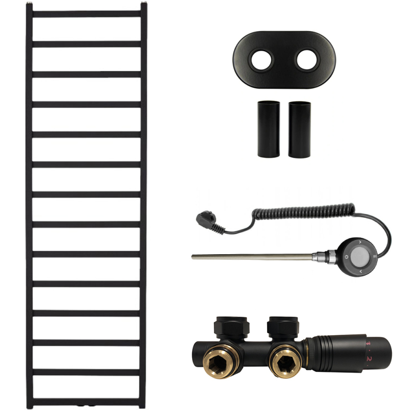 CERANO - Koupelnový radiátorový set Pyrodes - kombinované výtápění, wifi tyč - středové připojení 50 mm - 725W - černá matná - 1780x530 mm