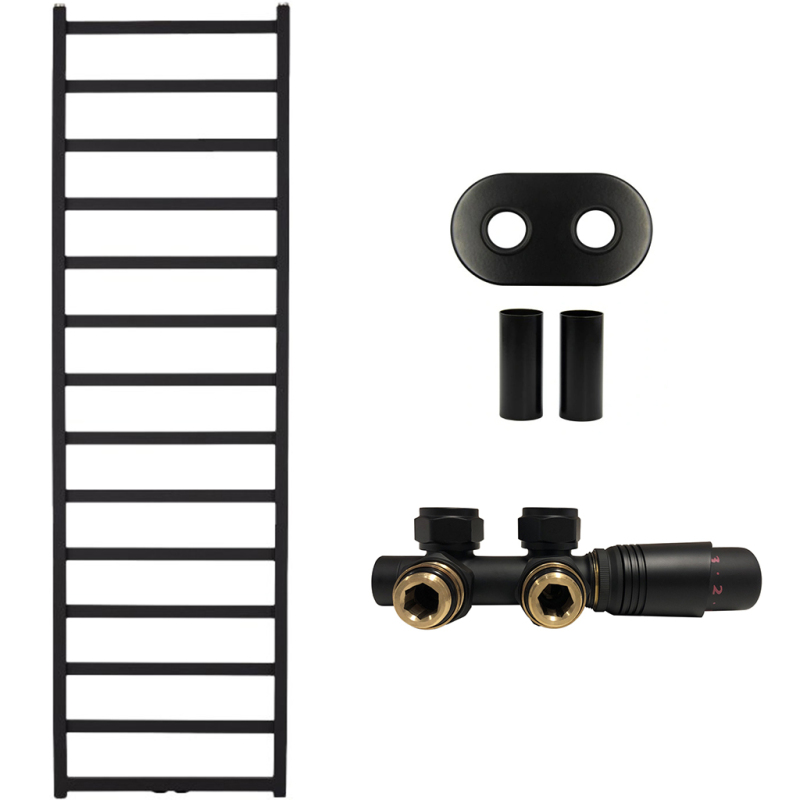 CERANO - Koupelnový radiátorový set Pyrodes - ústřední vytápění - středové připojení 50 mm - 725W - černá matná - 1780x530 mm