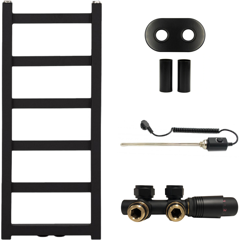 CERANO - Koupelnový radiátorový set Pyrodeus - kombinované výtápění, termo tyč - středové připojení 50 mm - černá matná - 730x300 mm