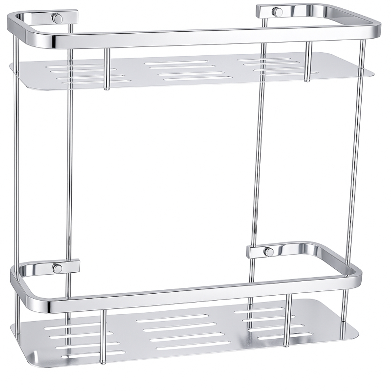 Minimalistický design a maximální praktičnost. Přesně to nabízí nástěnná koupelnová police Alto. Díky svému kompaktnímu tvaru skvěle využívá prostor v koupelně a je ideální pro umístění do sprchového koutu. Police má dvě patra, takže poskytuje dostatek místa pro sprchové gely, šampony a další hygienické potřeby, přičemž výřezy na odtok vody zabraňují hromadění vlhkosti a usnadňují údržbu.