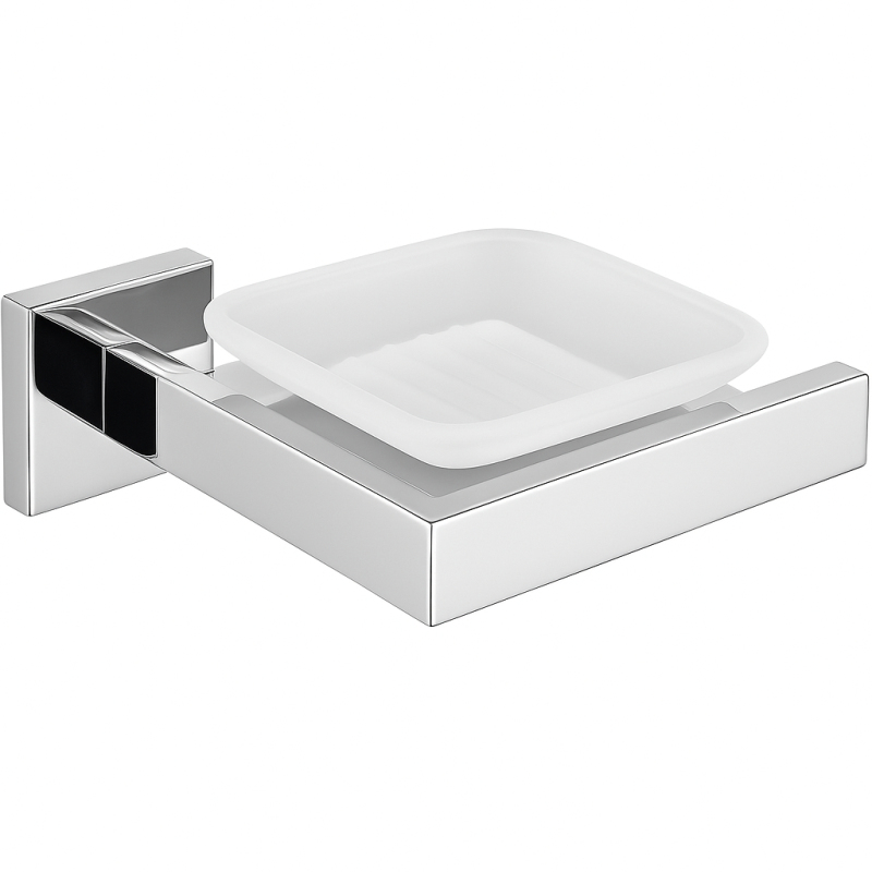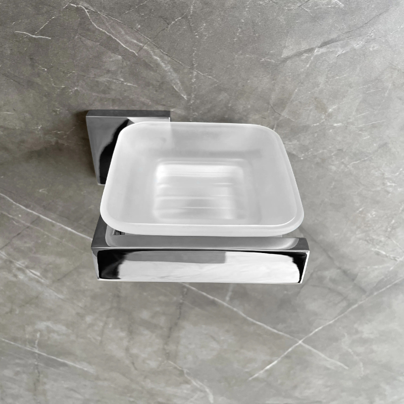Mýdlenka se skládá z pevného držáku z nerezové oceli a čtvercové misky z tvrzeného skla, která nejen skvěle vypadá, ale také se snadno čistí. K dispozici je ve dvou barevných variantách, černá matná pro sofistikovaný vzhled nebo chrom, který dodá interiéru nadčasovou eleganci. Díky nástěnnému provedení zůstává umyvadlo vždy čisté a bez zbytečných stop po vodě či mýdle.