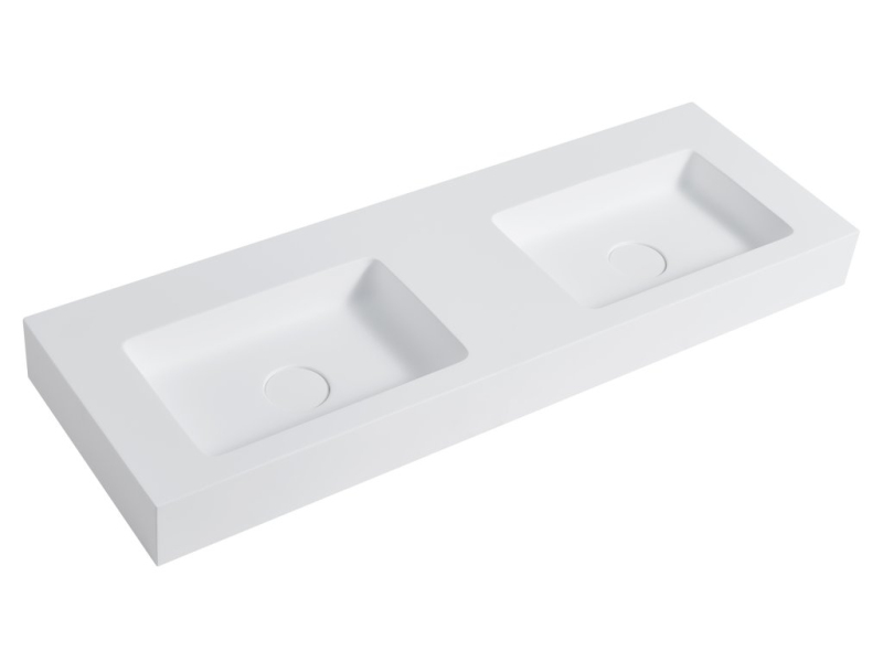 CERANO - Dvojumyvadlo z litého mramoru Geminia - nástěnné - bílá matná - 133x45 cm