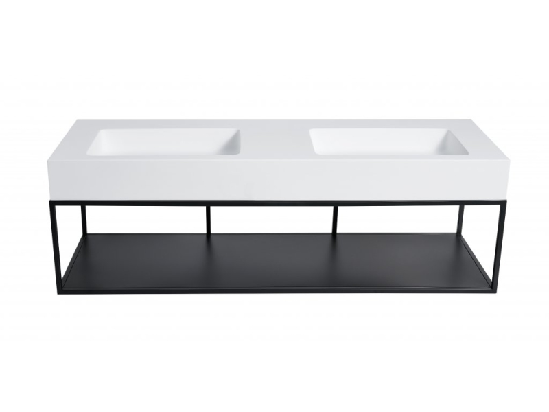 CERANO - Dvojumyvadlo z litého mramoru Geminia - nástěnné - černá matná - 133x45 cm