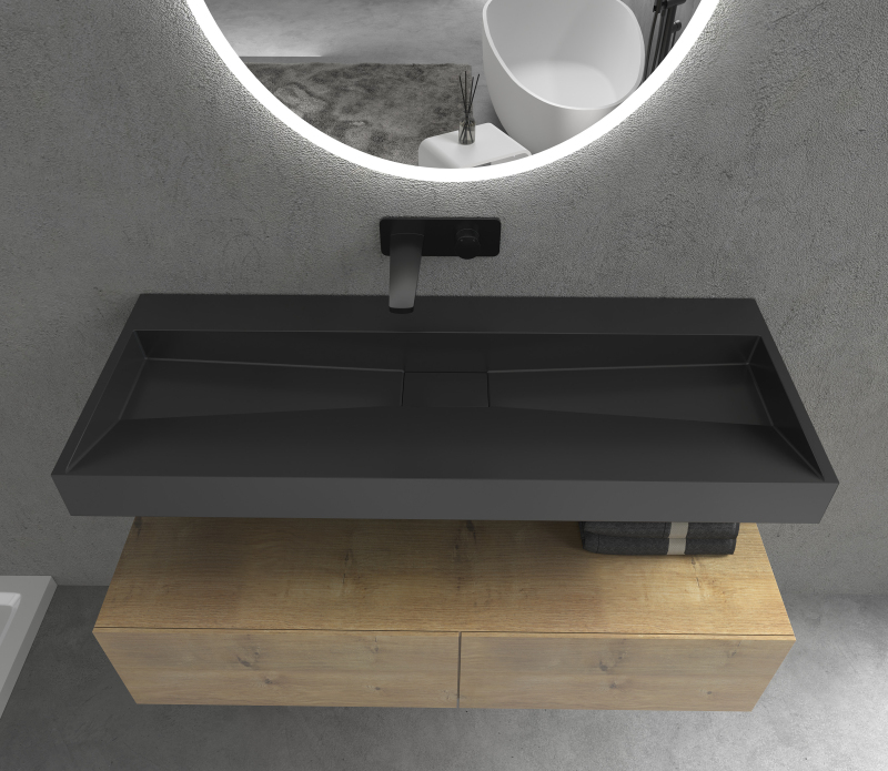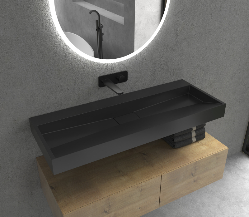 CERANO - Umyvadlo z litého mramoru Vita - nástěnné i na desku - černá matná - 120x46 cm