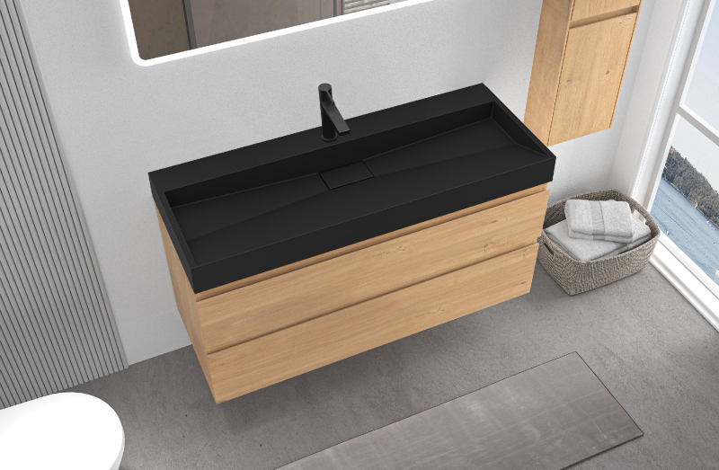 CERANO - Umyvadlo z litého mramoru Vita - nástěnné i na desku - otvor pro baterii - černá matná - 100x46 cm