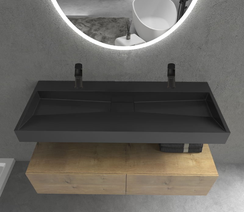 CERANO - Umyvadlo z litého mramoru Vita - nástěnné i na desku - 2 otvory pro baterii - černá matná - 120x46 cm