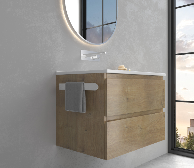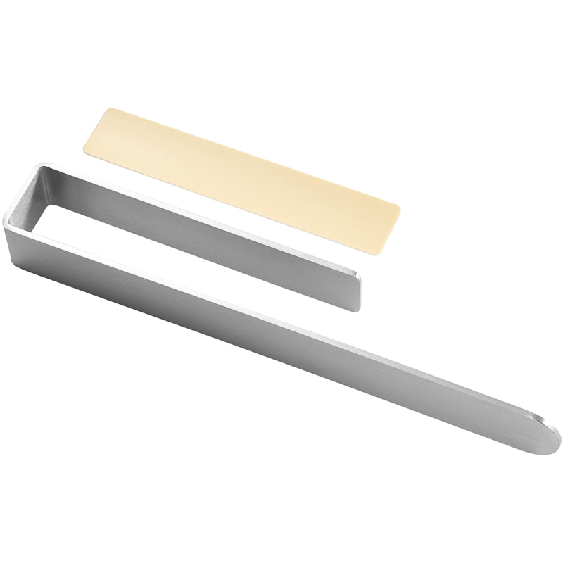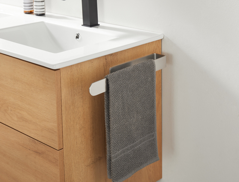 Přední strana disponuje dlouhým ramenem, které slouží k umístění ručníků. Toto rameno je pevně upevněno ke stěně pomocí oboustranně lepící vložky, která je diskrétně umístěna na zadní straně kratšího ramene. Její dokonalá přilnavost k povrchu stěny zaručuje, že držák bude maximálně stabilní a unese i těžší tkaniny. Montážní komponenty jsou součástí balení.